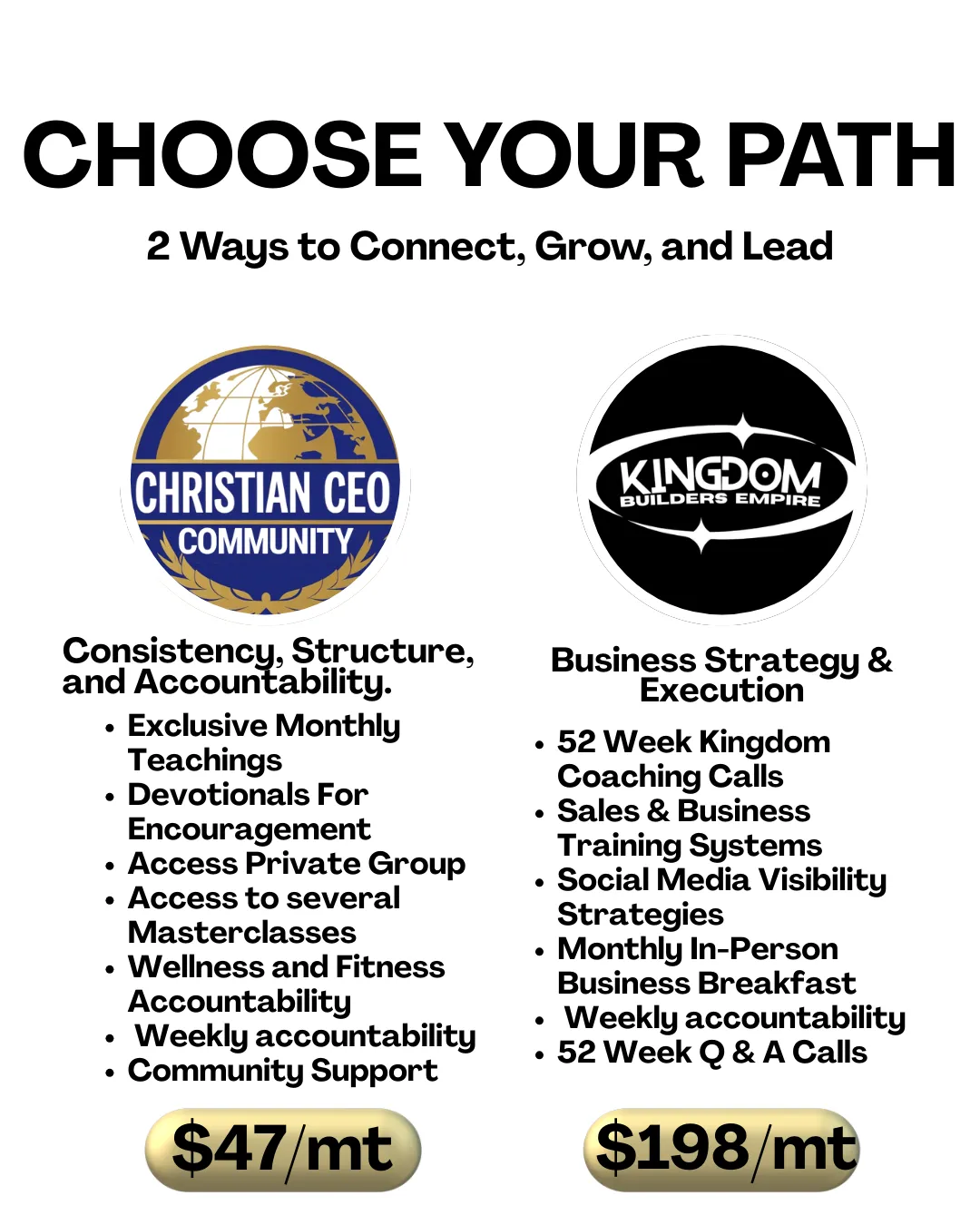 This is more than just a Networking group— it is a Community of Kingdom Builders, committed to growth and helping one another thrive in business while growing in faith and advancing God’s purpose in the marketplace.